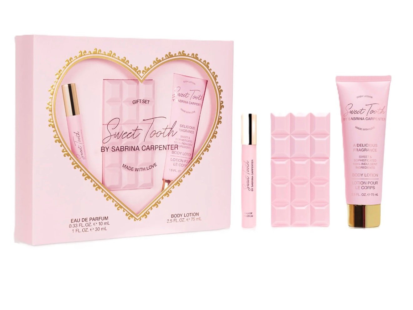 Kit de perfume, crema y travel size de Sabrina Carpenter
